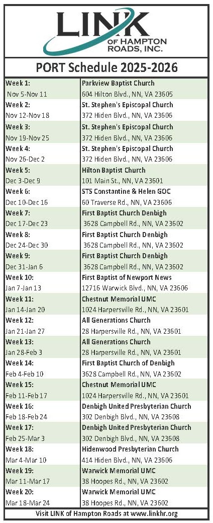 LINK has an on-site food pantry. Our food pantry is a distribution center where hungry families can receive food. We are supplied with food from a food bank. The amount of food distributed is determined by individual and family need. LINK is located at 10413 Warwick Blvd, Newport News, and OPEN 10:00 AM - 2:00 PM.